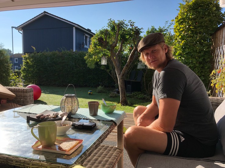 Idag söndag fick vi sommarvärme och sol igen och kunde äta frukost ute. Sen passade det utmärkt att cykla ner till vår handelsträdgård, underbara Kyrkbackens, och köpa kryssbollar att förgylla trädgården med. Men riktigt all-in gick jag inte med hösten utan drog gränsen vid ljung och pumpor, de får vänta! Någon måtta får det vara, vad ska vi annars pyssla med i oktober, november sen!? Som sagt, denna mellantid mellan sommar och höst är allt lite förvirrande. Men vilken skön helg, med lite av varje!
