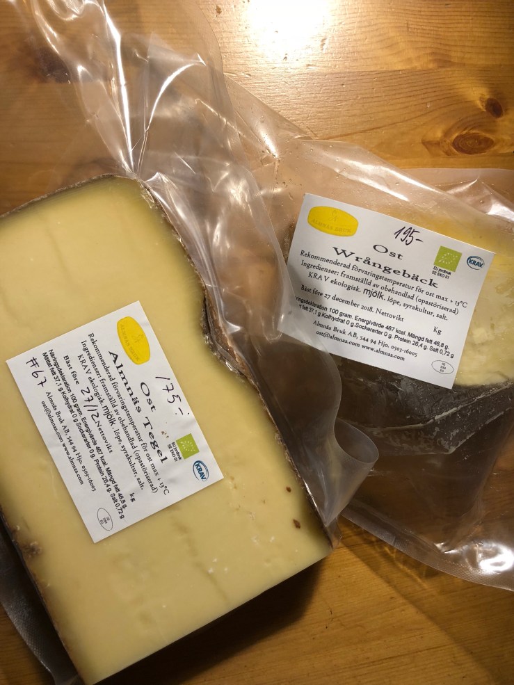 Vi är i Mariestad för en långhelg och igår torsdag på vägen upp hann vi med både Almnäs Bruk där vi blev bjudna på smakprover och sedan köpte deras utsökta ostar Wrångebäck och Tegel. Ester fick en bit Anno 1225 på köpet när hon uttryckte sitt gillande. Bra där!