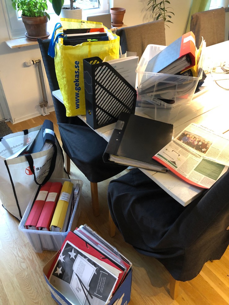 Jag håller på att rensa ur alla lådor och kassar som jag släpade hem från Ljungby för en dryg månad sedan då jag slutade där och jag tar lite i taget. Det är nämligen en hel del som har samlats på dryga 10 år, mycket papper och många minnen. Lägg därtill att jag är ursämst på att gallra och slänga. ”Det kan nog vara bra att ha en dag” är mitt motto! När jag nu spenderat en tid hemma sedan jag slutade så kan jag konstatera återigen att detsamma motto gäller på hemmaplan med. Jeeezus vad grejer vi har överallt!