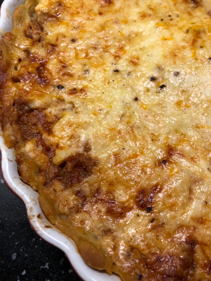 Därefter serveras en quornfärspaj, vi har på senaste tiden gått ifrån kött mer och mer. Med pajdeg som är gjord på mestadels kikärtor och bara lite mjöl och olja. Sen har vi också gått ifrån grädde och creme fraiche som vi hade i allt förut och insett att det blir i stort sett lika gott utan, räcker fint med mjölk tex. Men ost kan vi inte vara utan! Håll till godo med mina icke-proffsiga-matbilder! 🙂